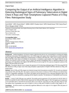 Comparing the Output of an Artificial Intelligence Algorithm in Detecting Radiological Signs of Pulmonary Tuberculosis in Digital Chest X-Rays and Their Smartphone-Captured Photos of X-Ray Films: Retrospective Study